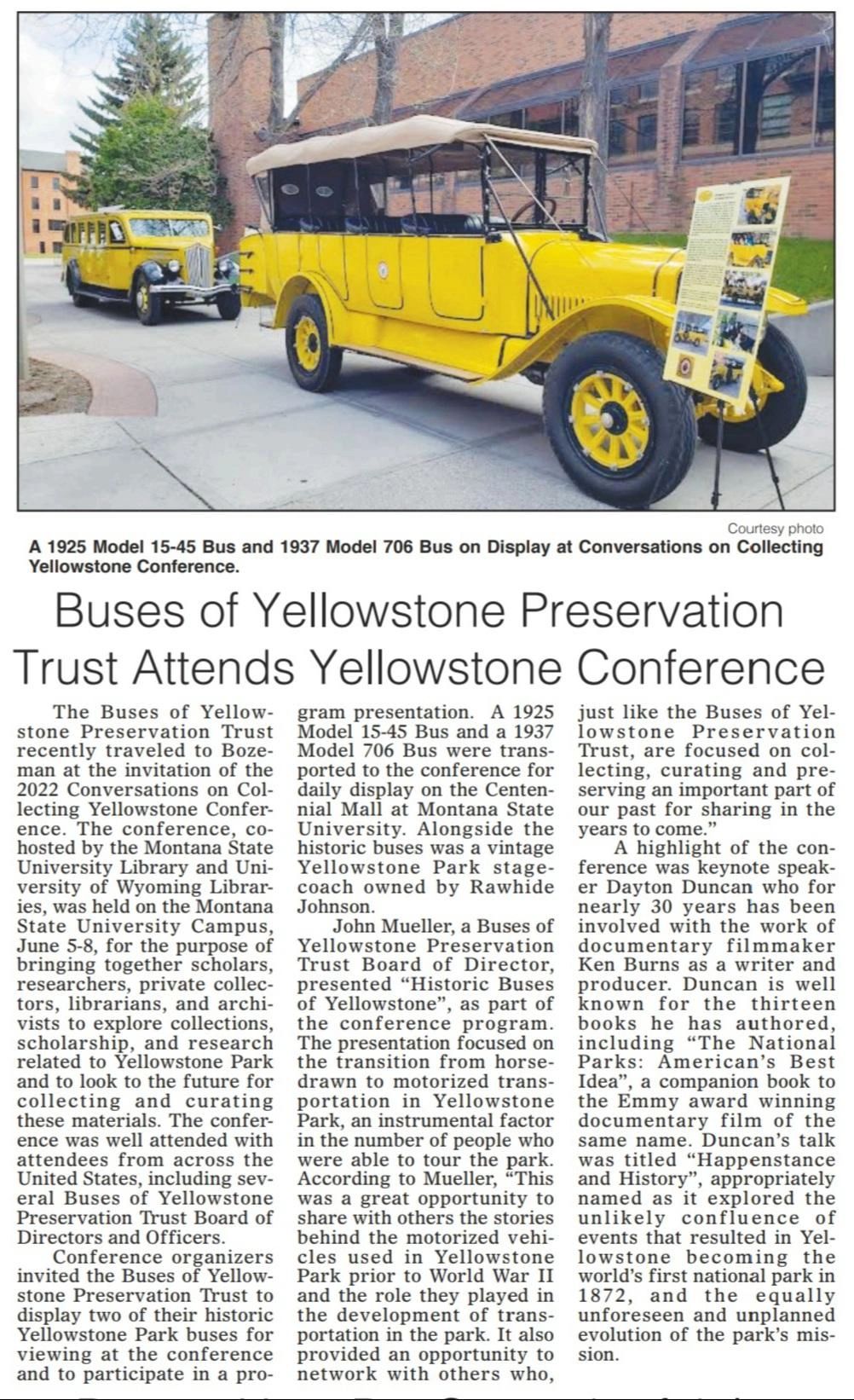 The Buses of Yellowstone Preservation Trust is giving tours via a 1937 Model 706 Yellowstone Park Bus.