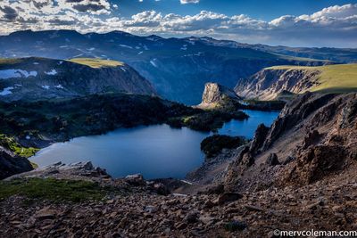 A steady climb winds past waterfalls, wildflowers and windswept pines until the tree line gives way to a fragile and rocky landscape capped by a boundless dome of sky. The surrounding Beartooth Mountains are home to elk, deer, mountain goats, bighorn sheep, grizzly and black bears, mountain lions, and many other species.