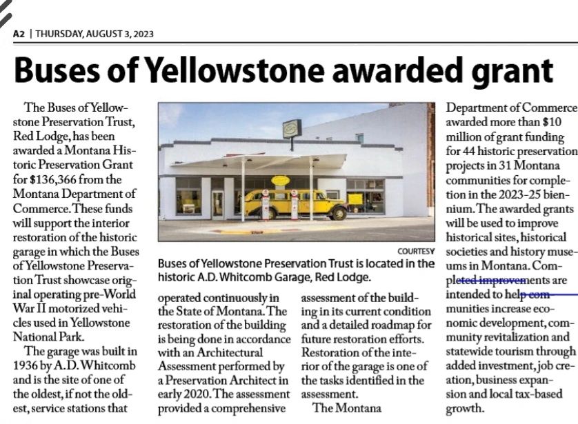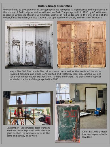 Historic preservation has always been the mission of the Buses of Yellowstone Preservation Trust, particularly as it relates to original operating motorized vehicles used in Yellowstone Park prior to WWII and the historic AD Whitcomb garage in which they reside. That mission recently expanded to the preservation of the old blacksmith shop doors not-so-long-ago replaced on the backside of our historic garage located in Red Lodge.